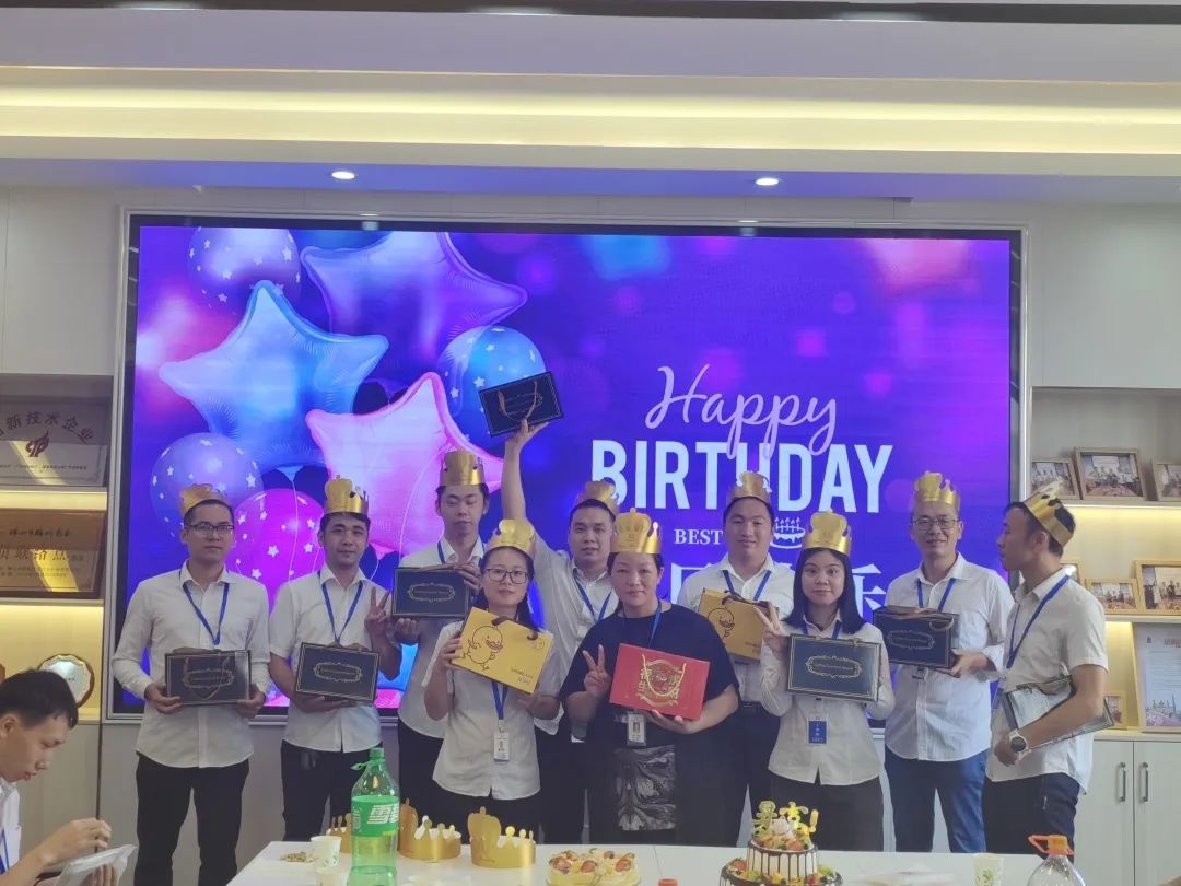 为了增强公司凝聚力和亲和力,丰富企业文化,加强对员工的人文关怀,增强员工归属感,2022年6月25日,广东洪实公司在大会议厅举行2022年第二季度员工生日活动。