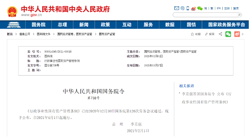 日前,《行政事业性国有资产管理条例》已经国务院第120次常务会议通过。《条例》明确提出:各部门及其所属单位采用建设方式配置资产的,应当在建设项目竣工验收合格后及时办理资产交付手续,并在规定期限内办理竣工财务决算,期限最长不得超过1年。各部门及其所属单位对已交付但未办理竣工财务决算的建设项目,应当按照国家统一的会计制度确认资产价值。