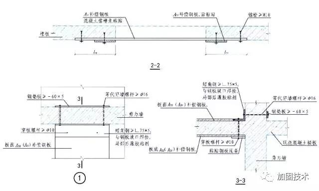 3)补偿钢板面积不得小于截断钢筋的等效截面面积的1.2倍。