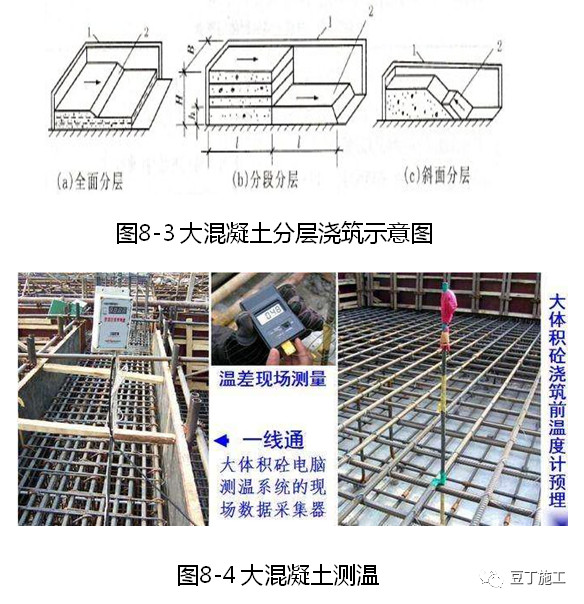 ⑸ 控制水化热;降低混凝土的入模温度,控制混凝土体的内外温差(如设计无要求,控制在25°C以内)。