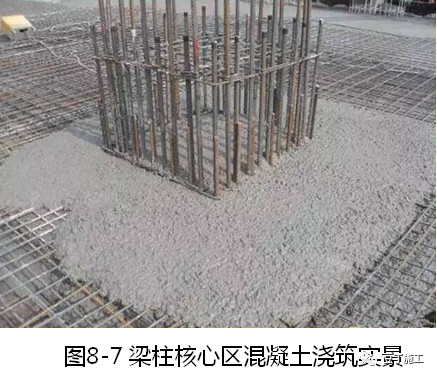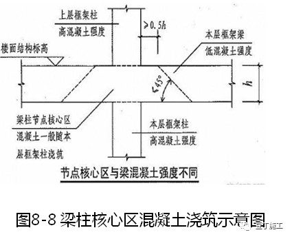 ⑶ 梁板的混凝土采用二次振捣法,即在混凝土初凝前再振捣一次,增强高低强度等级混凝土交接面的密实性,减少收缩。