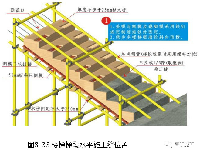 ⑴ 施工缝位置严格按方案留置,应留置在受剪力较小且便于施工的位置。