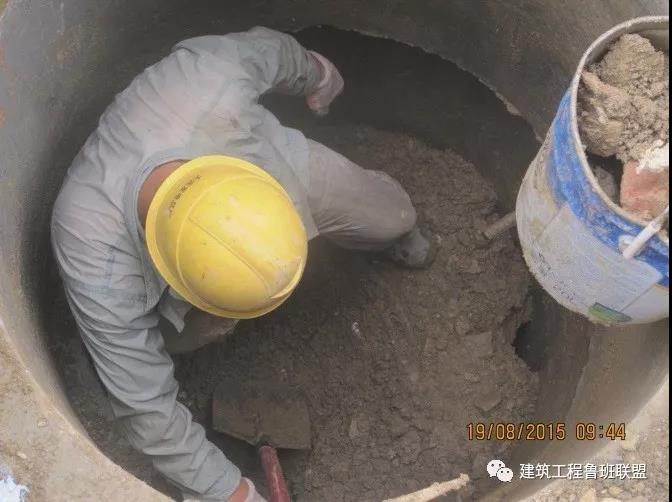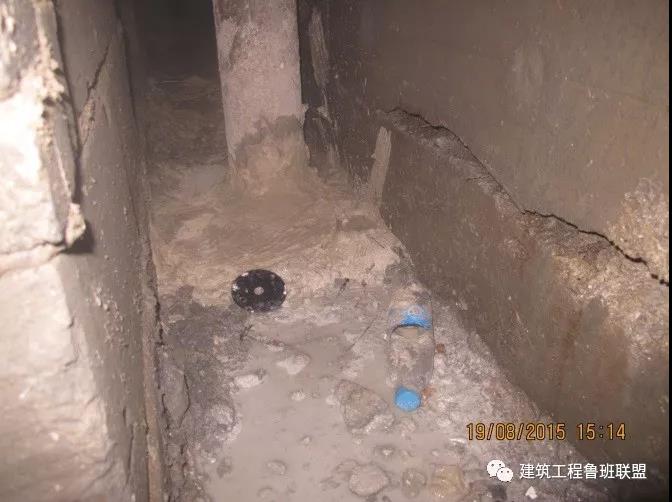 内衬墙内排水立管未接驳、且排水洞口被垃圾堵塞,水无法汇入集水井内,溢流出墙体,流至路面。疏通后及排水管道安装到位后,内衬墙内积水顺利汇入集水井内,地面积水缓解。