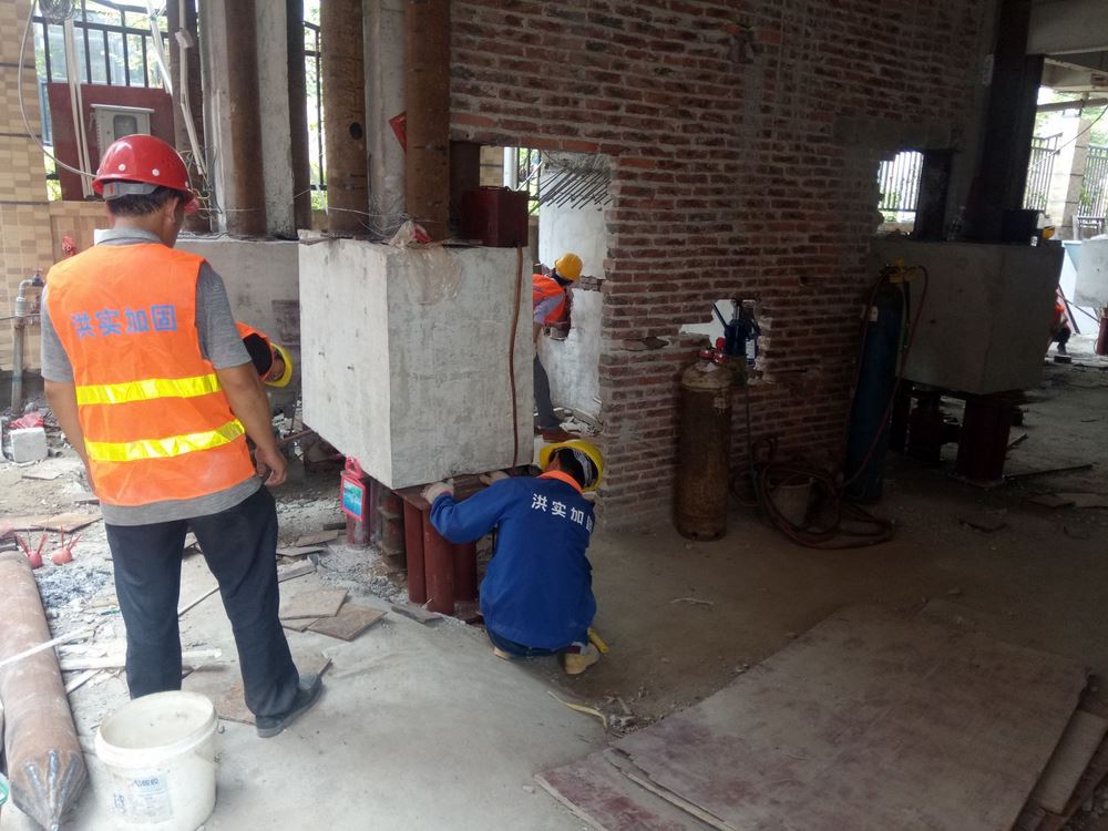 房屋纠偏加固中的顶升纠偏是通过钢筋混凝土或砌体的结构托换加固技术,将建筑物的基础和上部结构沿某一特定的位置进行分离,采用钢筋混凝土进行加固、分段托换、形成全封闭的顶升托换梁(柱)体系。